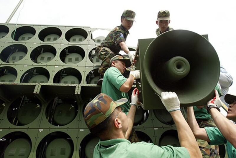 대북확성기. 한국 합참은 9일 "대북 방송 중단 여부는 북한의 행동에 따라 달려 있다"고 밝혔다. (연합)