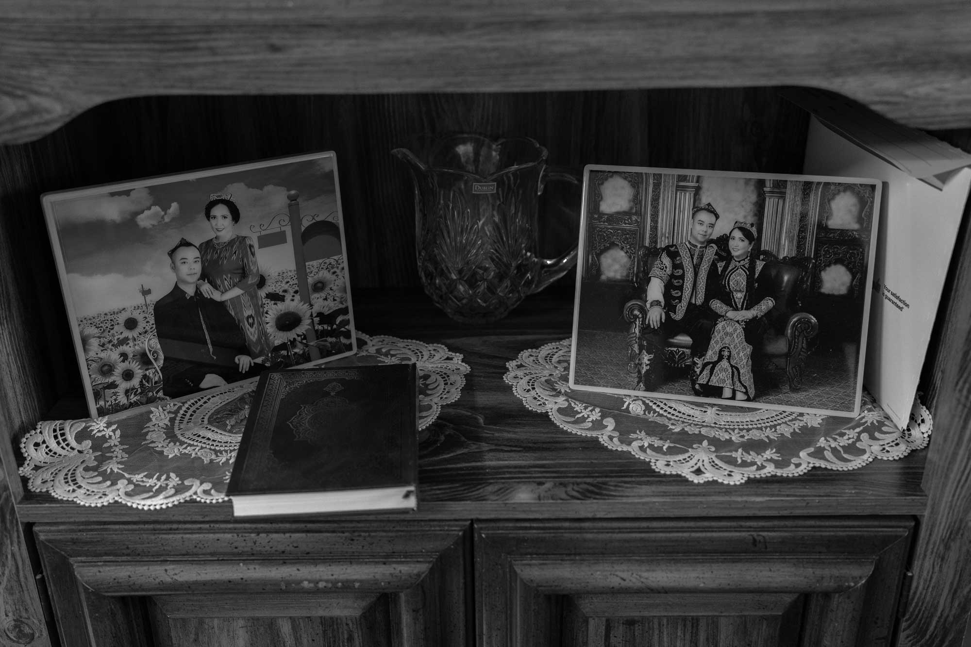 ئەردەنئاي ئاتا-ئانىسىنىڭ توي خاتىرە سۈرىتىنى كۆرگەندىن كېيىن ئاپىسىنى قۇچاقلىماقتا. ئۇ «2017-يىلى خىتاي دائىرىلىرى يولدىشىمنىڭ پاسپورتىنى تارتىۋالدى. ئۇلار ئامېرىكا ۋىزىسى ئۈچۈن كېرەك بولغاندا قايتۇرۇپ بېرىمىز، دەپتىكەن. لېكىن ئۇلارنىڭ گېپى يالغان چىقتى» دېدى.