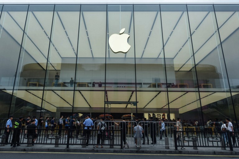 Người dân xếp hàng bên ngoài cửa hàng Apple chờ mua điện thoại iPhone mới nhất tại Hàng Châu, tỉnh Chiết Giang, Trung Quốc vào ngày 21 tháng 9 năm 2018. AFP